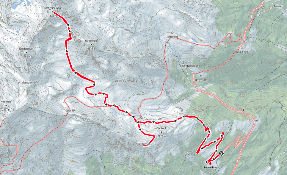 Vandaag staat de Hochgrubenkopf op het menu. In 2019 probeerde ik dat ook al maar toen bleek de Mautstrasse vanaf Zraunig afgesloten te zijn. Vandaag gelukkig niet zodat ik tot op 1900m met de auto kon komen. Je betaalt €5 in munten om deze goede onverharde te mogen gebruiken. Op het kaart staat het niet helemaal goed aangegeven, je rijd met de auto nog verder.